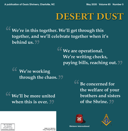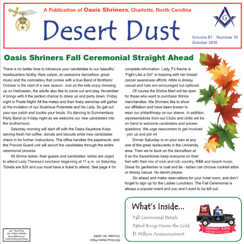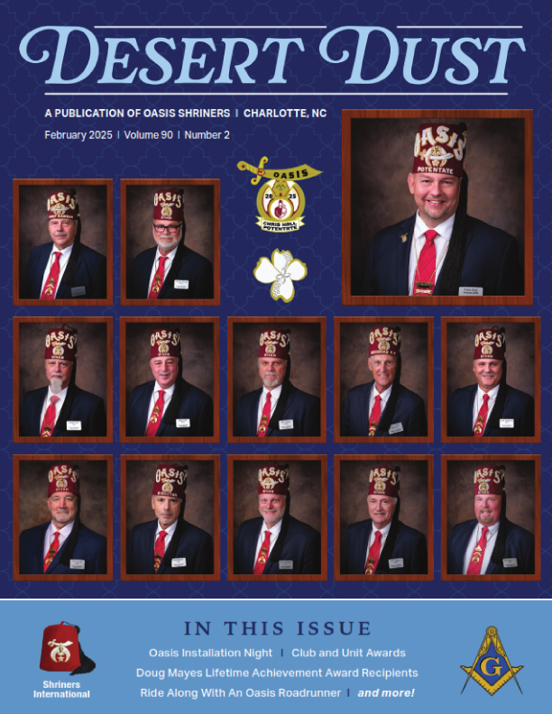 • Monthly Reminder: The Desert Dust is already electronically available each month on the Oasis Shriners website at https://oasisshriners.org/connect/desert-dust